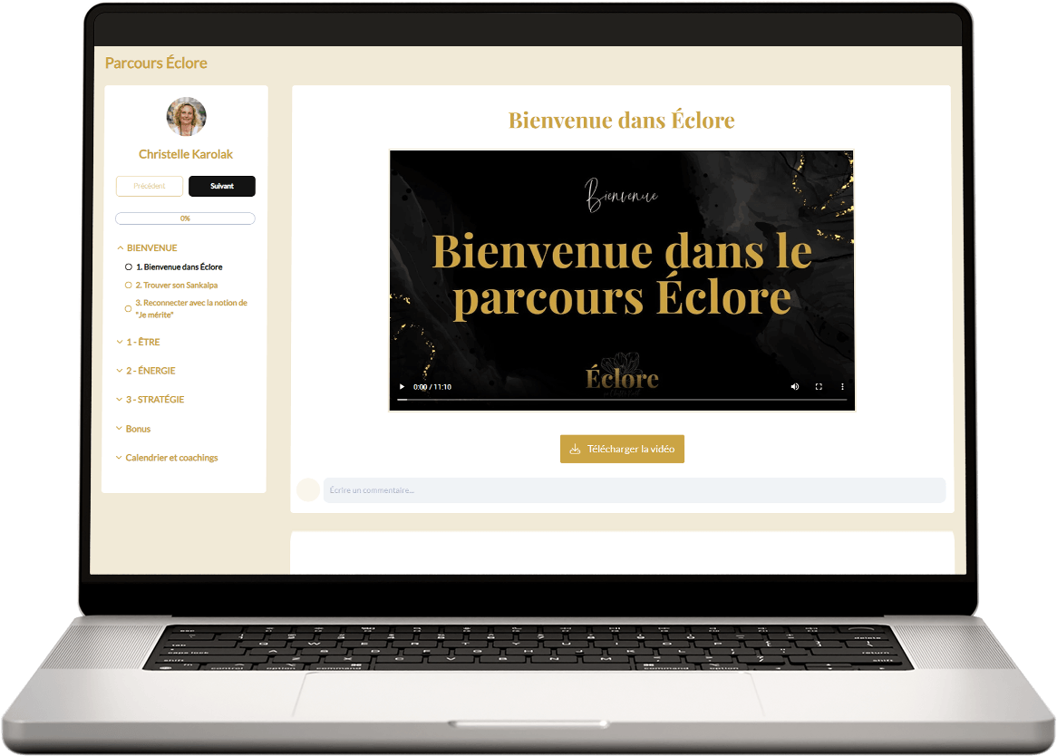Une plateforme privée avec des vidéos courtes (10 à 20 minutes), pour progresser à ton rythme entre les sessions et intégrer les clés étape par étape.