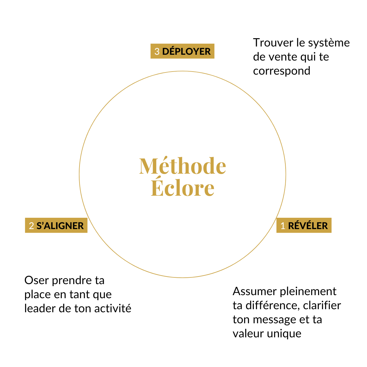 En clair : si tu accompagnes déjà des clientes et que tu veux passer de la praticienne qui bricole à la leader de transformation, alors Éclore est fait pour toi.