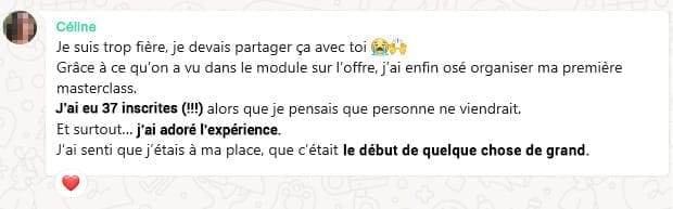 Tu maîtrises ta stratégie de communication et tu sais exactement comment parler à tes clients. Tu ne copies plus les autres : tu as trouvé ta propre voix, celle qui résonne et qui convertit
